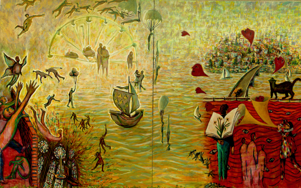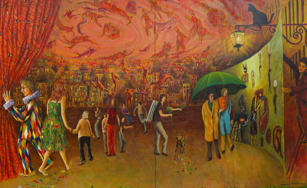 Des œuvres d’art inspirées des vies et des souvenirs des habitants d’une cité de transit aujourd’hui disparue. Guendouz a réalisé des tableaux qui font mémoire du vécu et des personnes rencontrées au cours de son enfance, son adolescence et sa vie d’adulte. Les trois toiles monumentales offrent un témoignage poignant et visuel des réalités sociales et humaines.