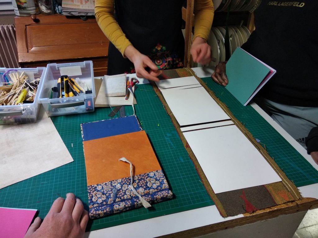Tout au long du projet, les participants ont été accompagnés pas à pas. Choix des formats, des papiers, des couleurs ou encore des couvertures : chaque décision a été l’occasion d’expérimenter et d’apprendre. Les ateliers ont favorisé l’échange d’idées et l’entraide, créant une vraie dynamique de groupe.