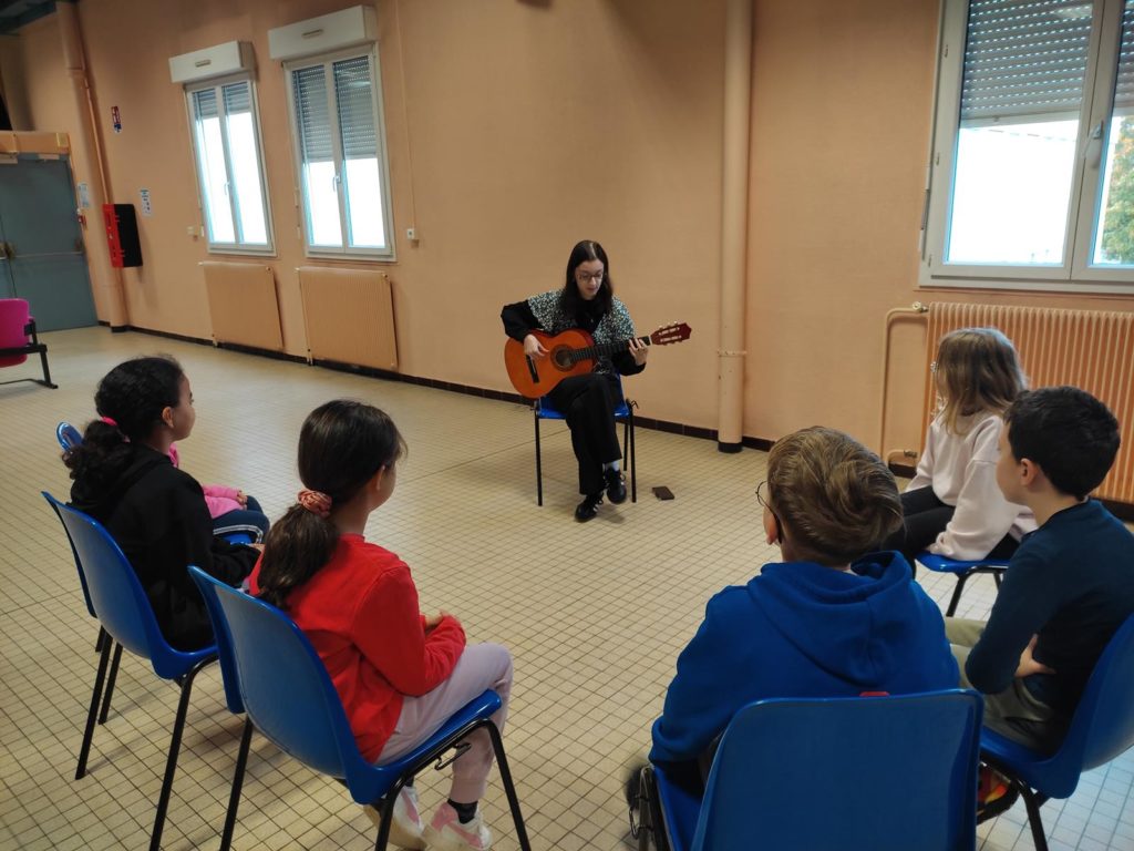 Pauline et Rémi, jeunes musiciens de l’Ecole Supérieure de Musique de BFC ont permis à 11 enfants (issus de l’accueil de loisirs de la Ville de Chenôve et des Maisons Pop, âgés de 6 à 11 ans) de découvrir le conte musical « Pierre et le Loup » de Serguei Prokofiev et de le présenter en public.