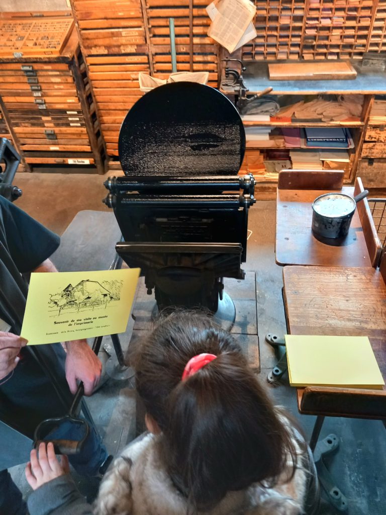 Pendant les vacances d’hiver, les sorties familles ont eu lieu à l’Écomusée de la Bresse bourguignonne et au Musée de l’Imprimerie. Les plus jeunes ont pu créer un abécédaire et les plus grands ont pu imprimer des cartes de visite de l’écomusée grâce aux outils d’époque et à une ancienne presse.